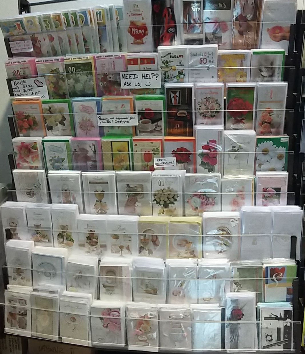 Polecamy Waszej uwadze szeroką ofertę ozdób i dekoracji, kartek okolicznościowych, kosmetyków Ziaja oraz obuwia dziecięcego i dla dorosłych!